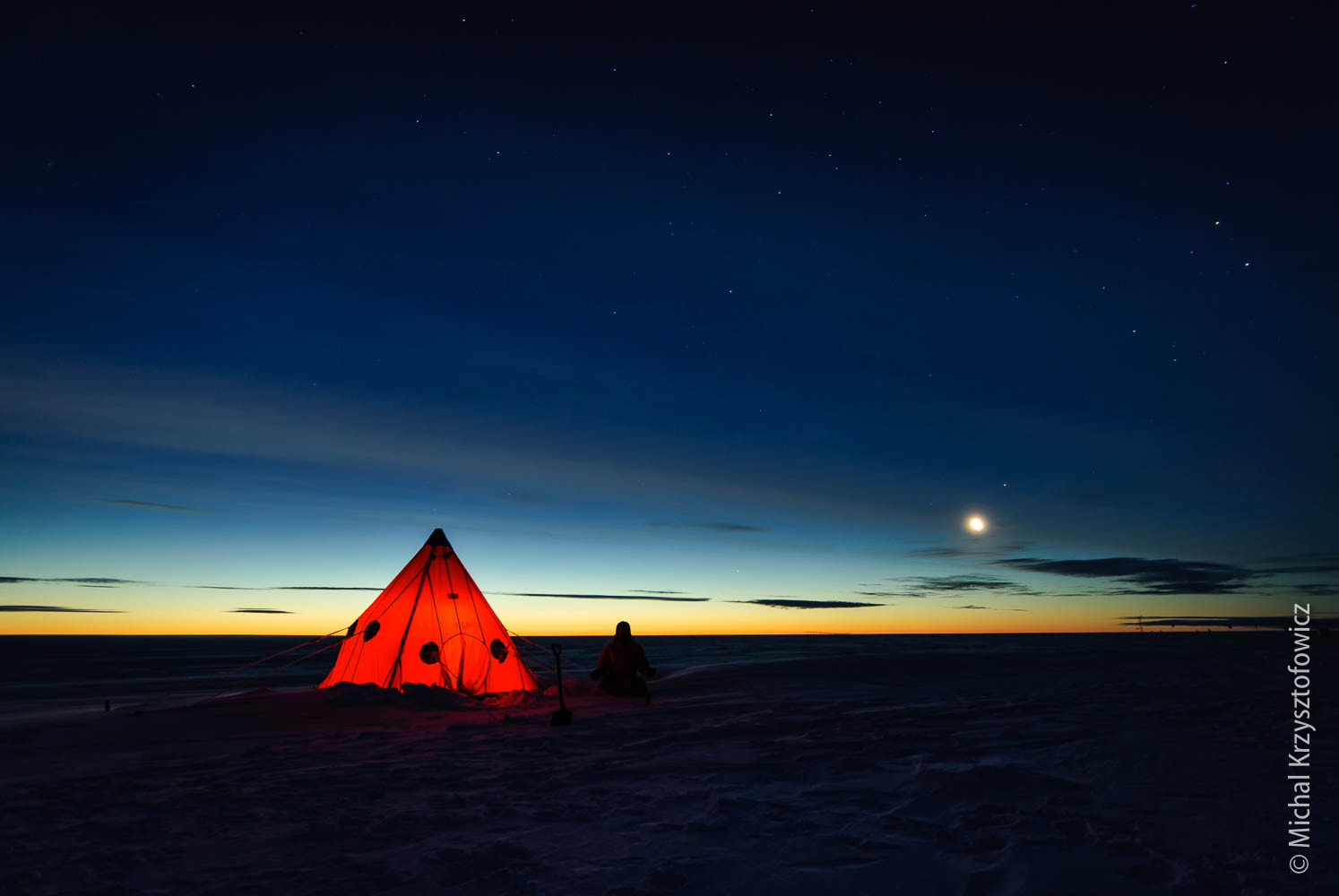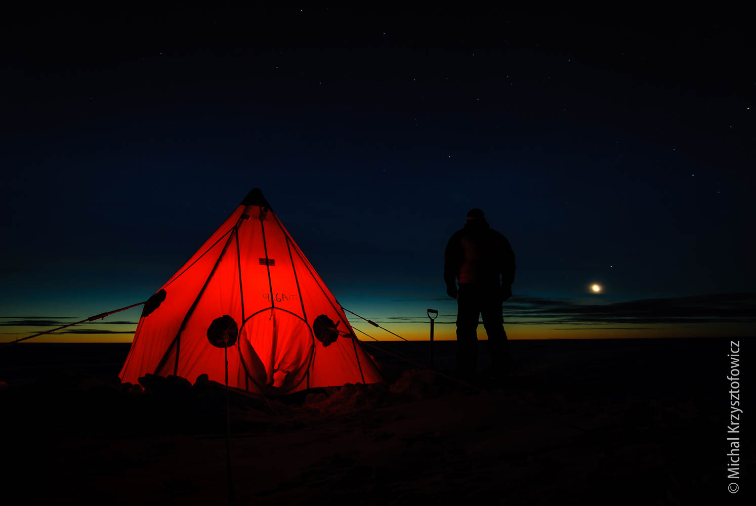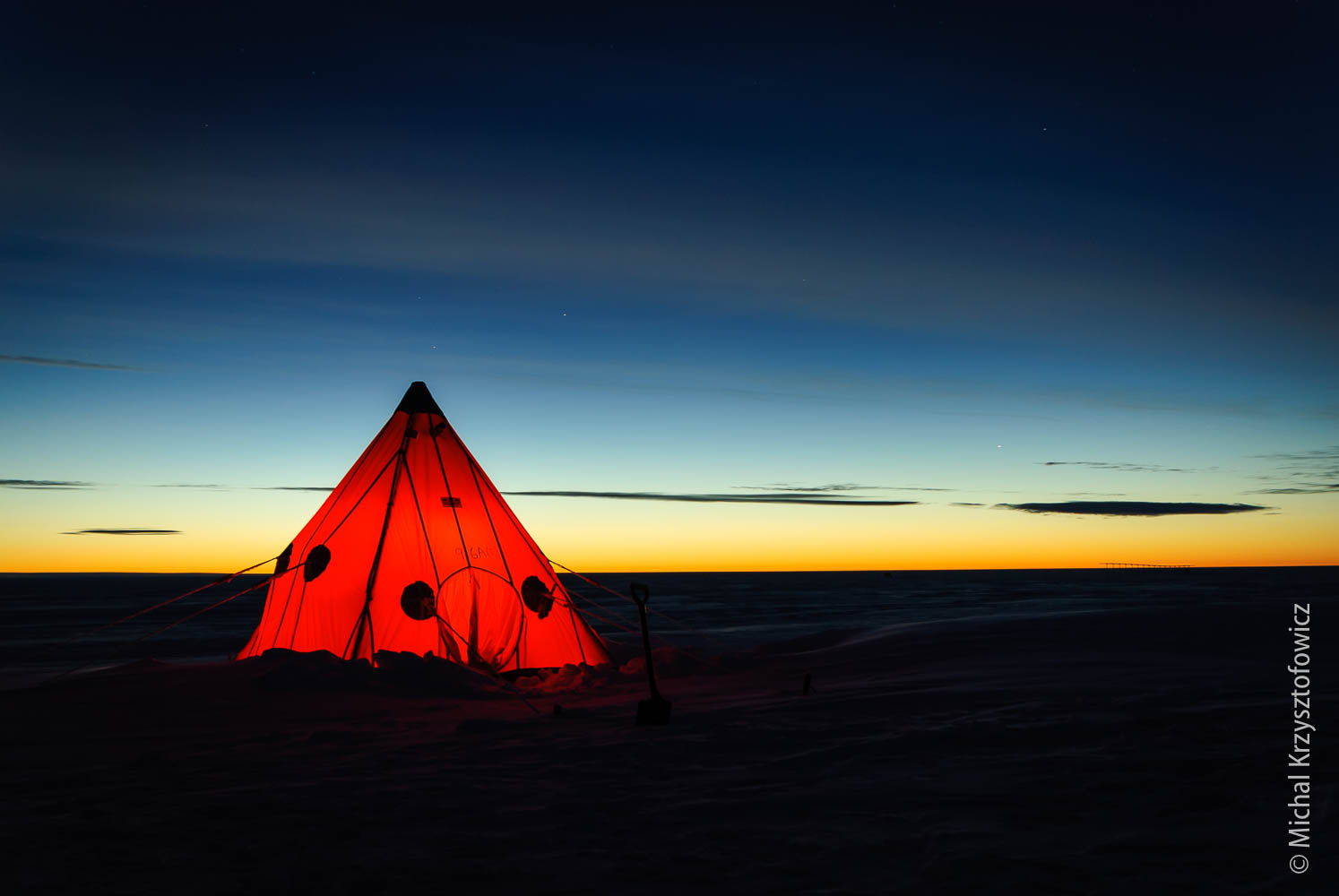 One of the more iconic views on any of the BAS expeditions to the Antarctic is a Pyramid Tent, lit up from the inside with a Tilley Lamp, on a back drop of an evening (or early morning) sky.
