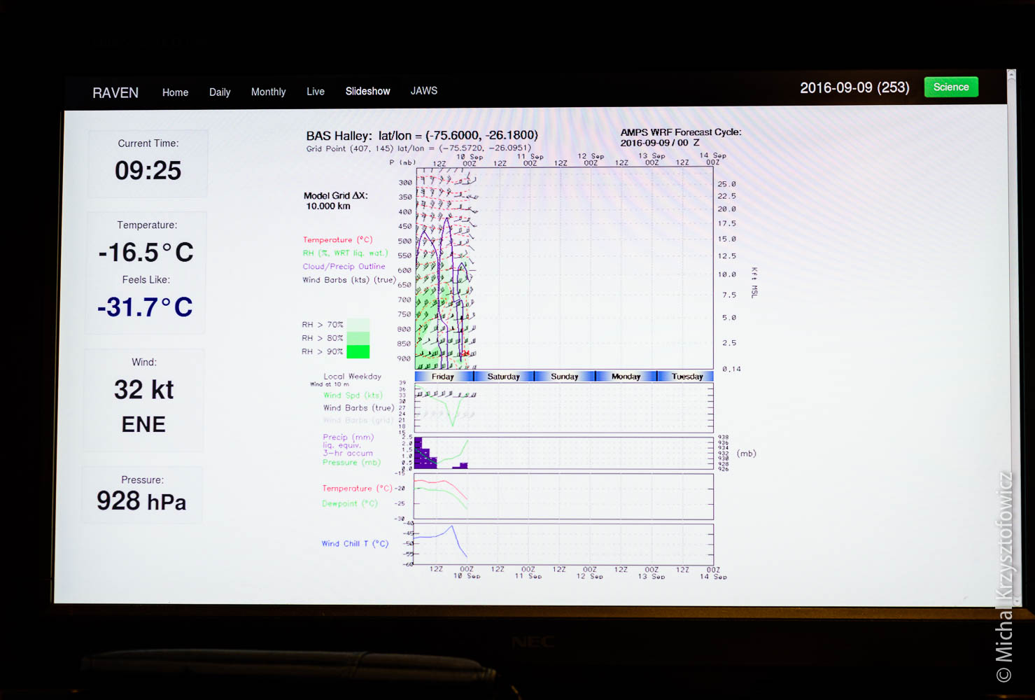 As it happened, we’ve beat the previous lowest ever recorded atmospheric pressure at Halley. The pressure dropped to 928 mbar on 9th September, a whole 2 mbar less than the record from 1994!