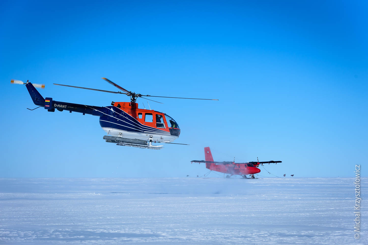 Also, we had another aircraft visiting us today and this was quite an unusual sight at Halley. It was a helicopter that came in from the German research vessel Polarstern, which is close to the coast of the Brunt Ice Shelf at the moment. The helicopter came in twice, first to drop a few poeple off for a tour of the station, and then again to pick them back up. It was a 50km flight and it took them around 10-15 minutes each time to cover that distance. Some difference compared to my 4 hour one-way journey in the John Deere!