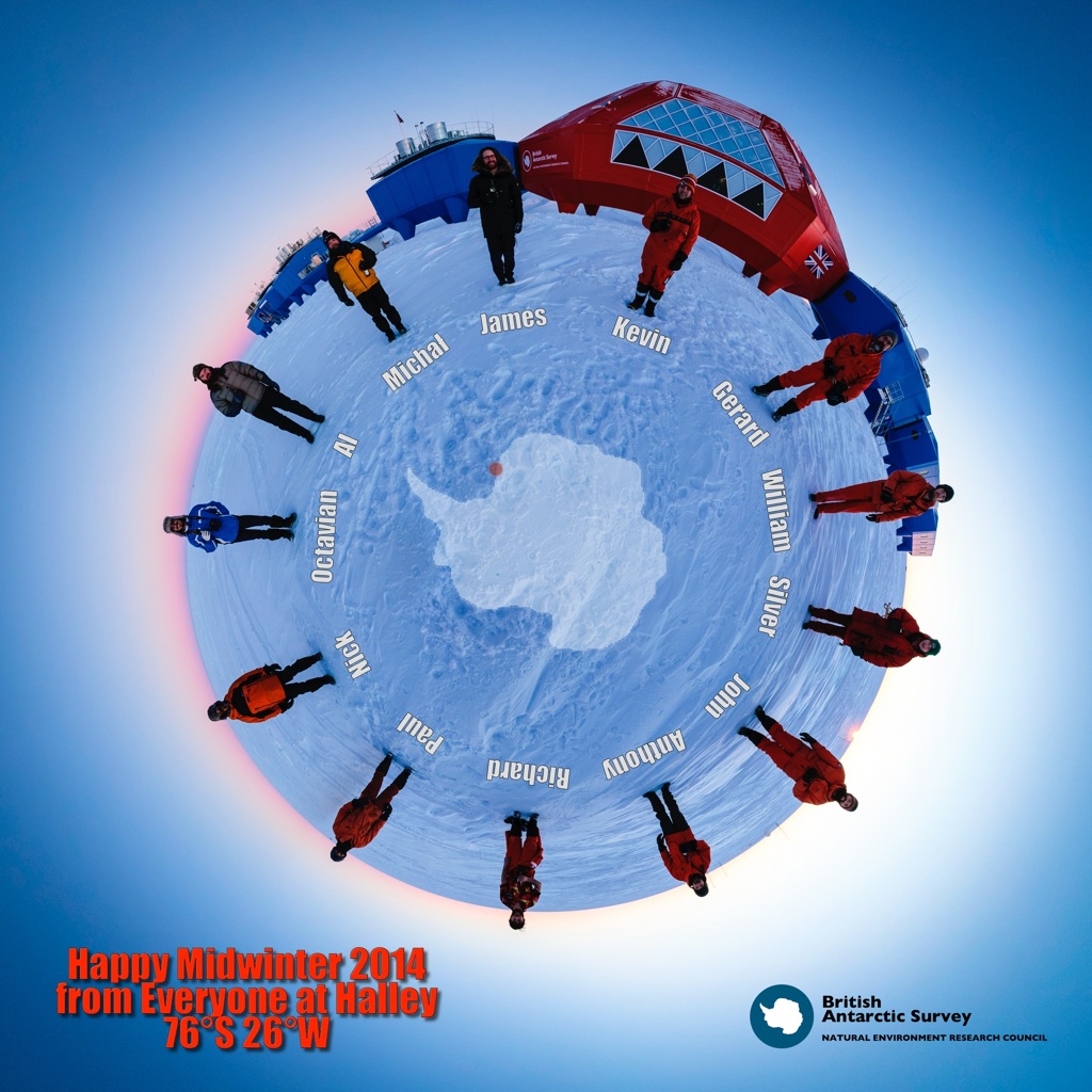For now – Happy Midwinter from all at Halley Research Station, Antarctica, 76°S 26°W