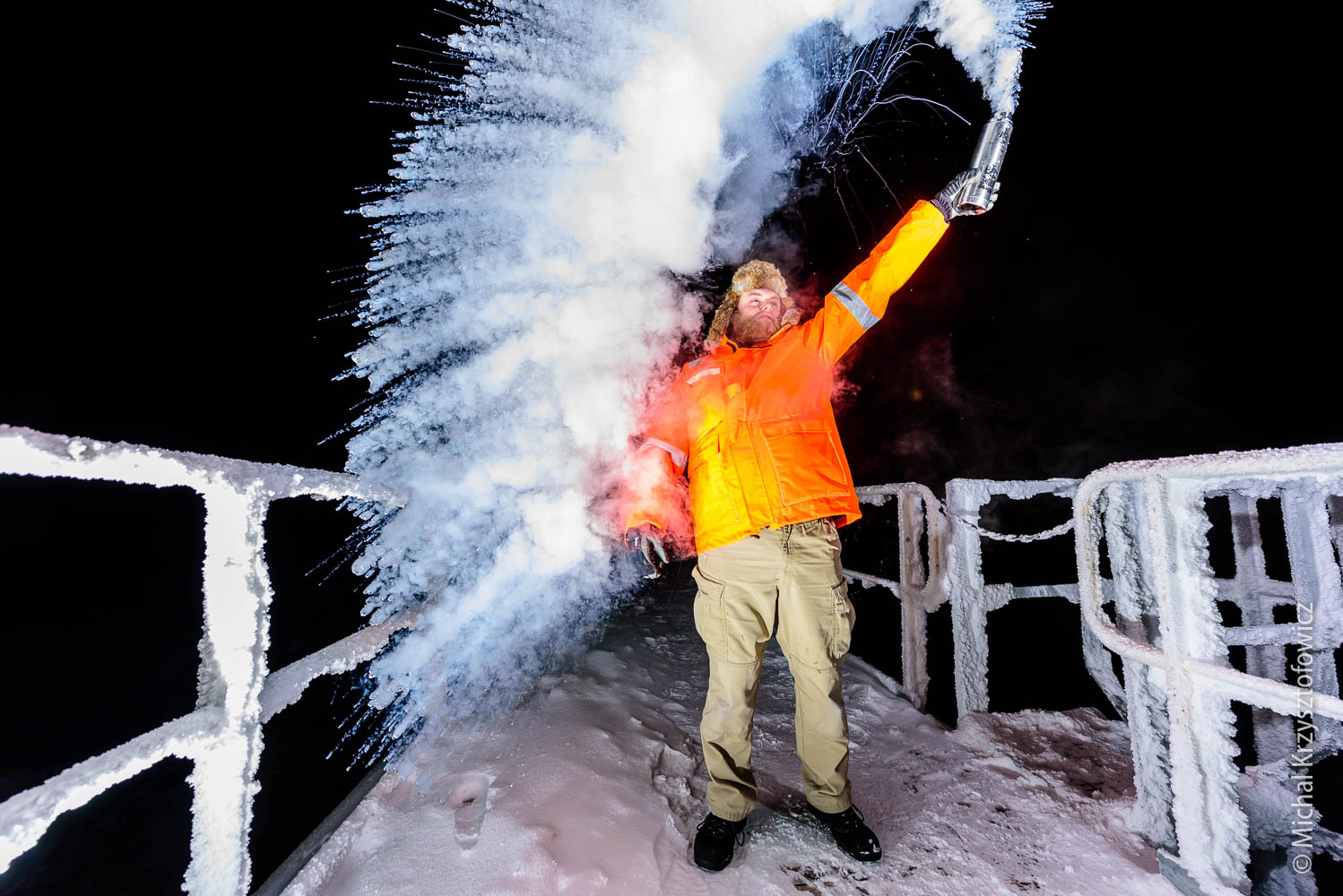 Finally we had a few good shows of aurora, as well as weather phenomena like light pillars, beautiful moonrises and moonsets, some cool cloud, fantastic light and colours and absolutely stunning starry nights. We also took the opportunity the cold weather gave us and goofed around throwing some boiling water up in the air to let it freeze instantly – always a good trick.