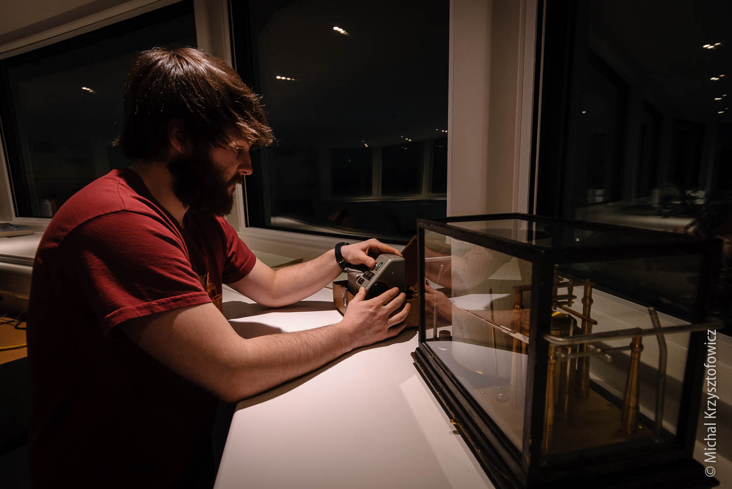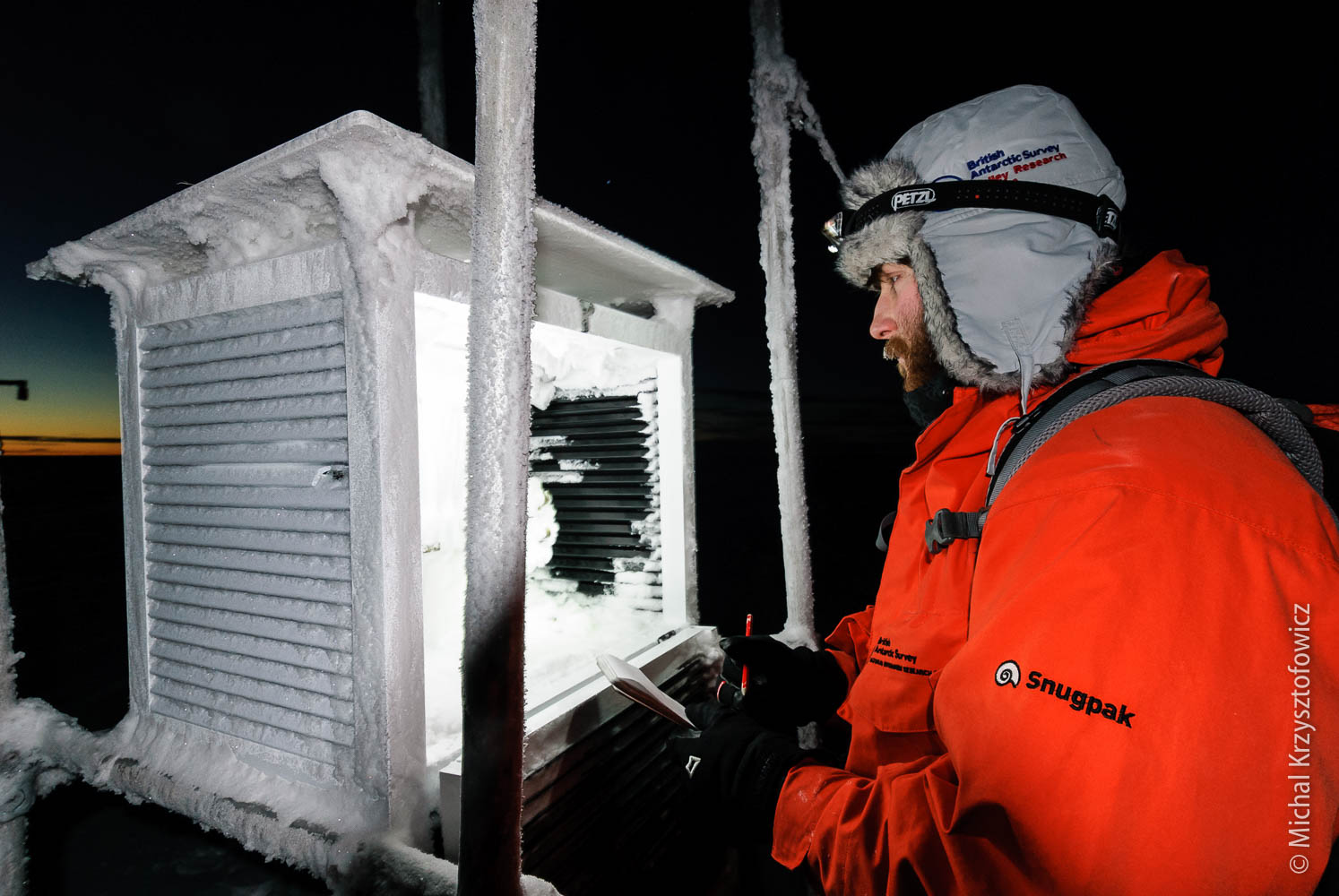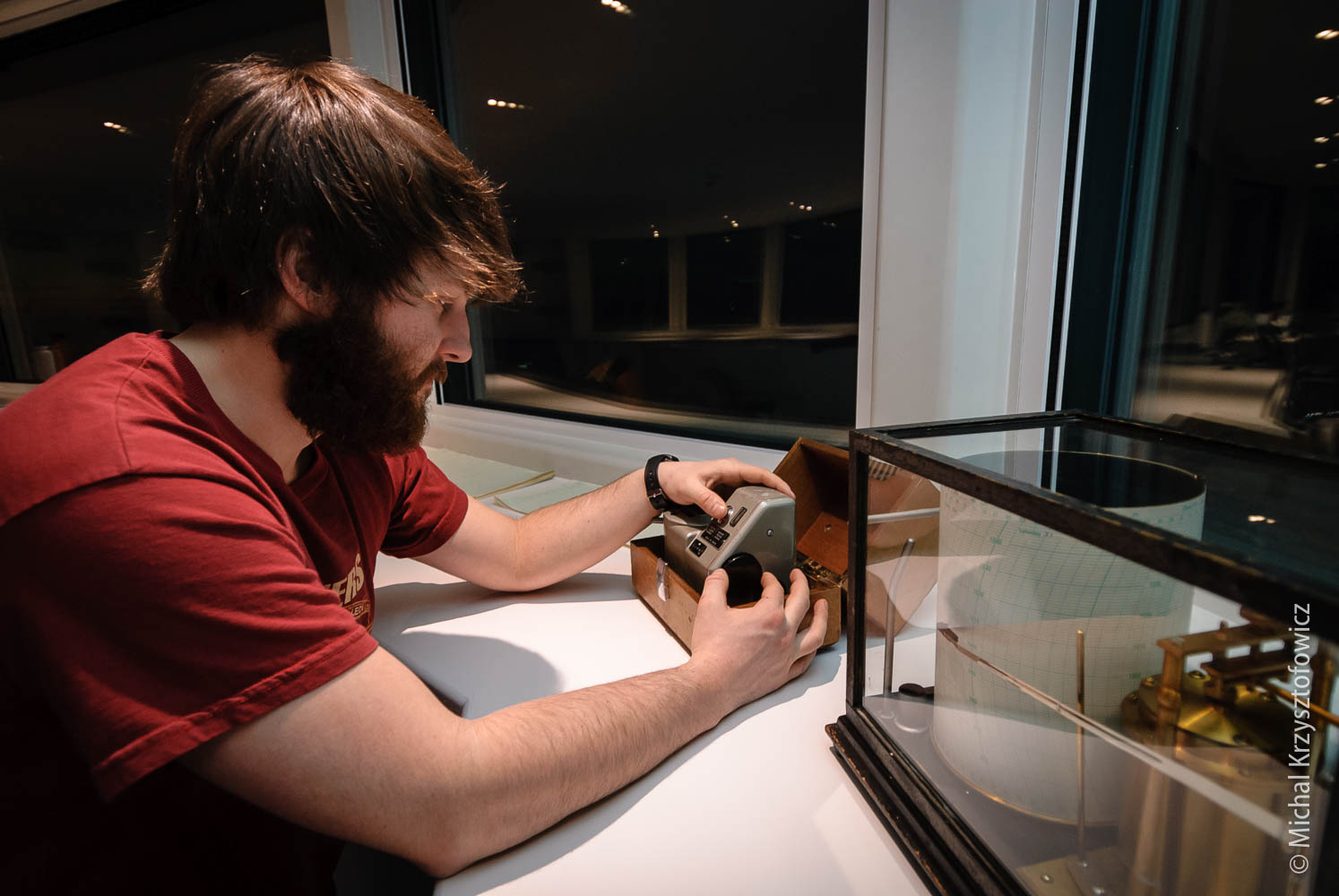Our Met Babe, Richard, is the subject of my first environment portrait. It’s a bit of a happy accident, as there was a requirement to get a portrait of the Met person at their work for a presentation that someone in BAS is doing, but I thought I’d use the opportunity and kick off my project. I also find it very fitting, as Richard is part of the Team Beaker (i.e. the Science Team, which I’m also a member of), and the Meteorology is one of the most important long term study here at Halley.