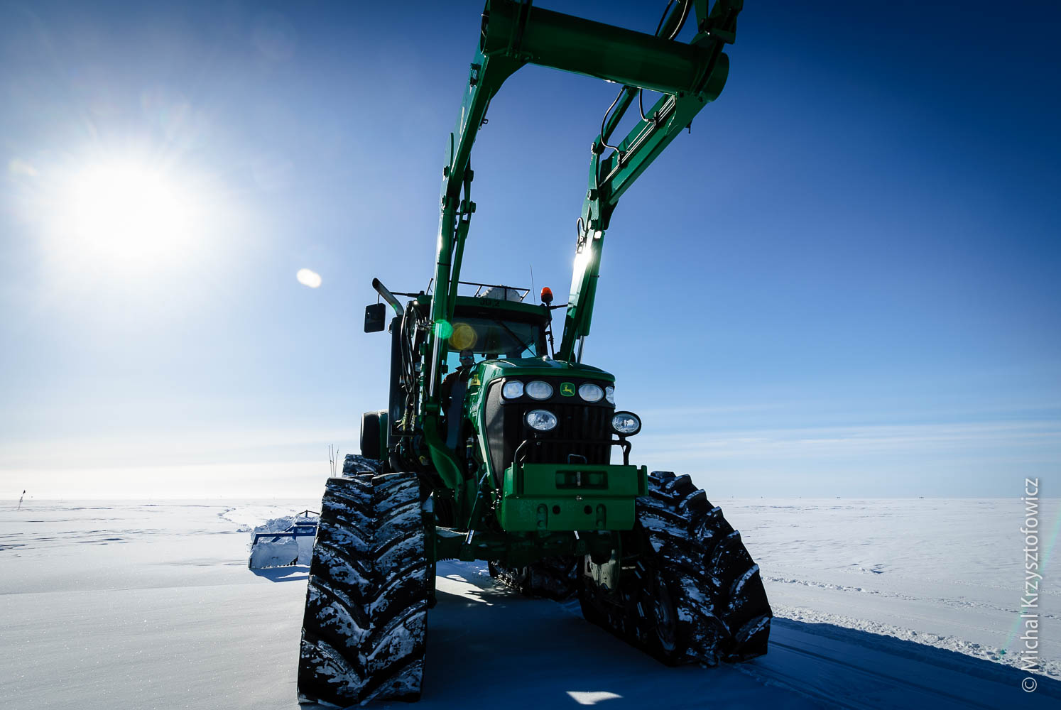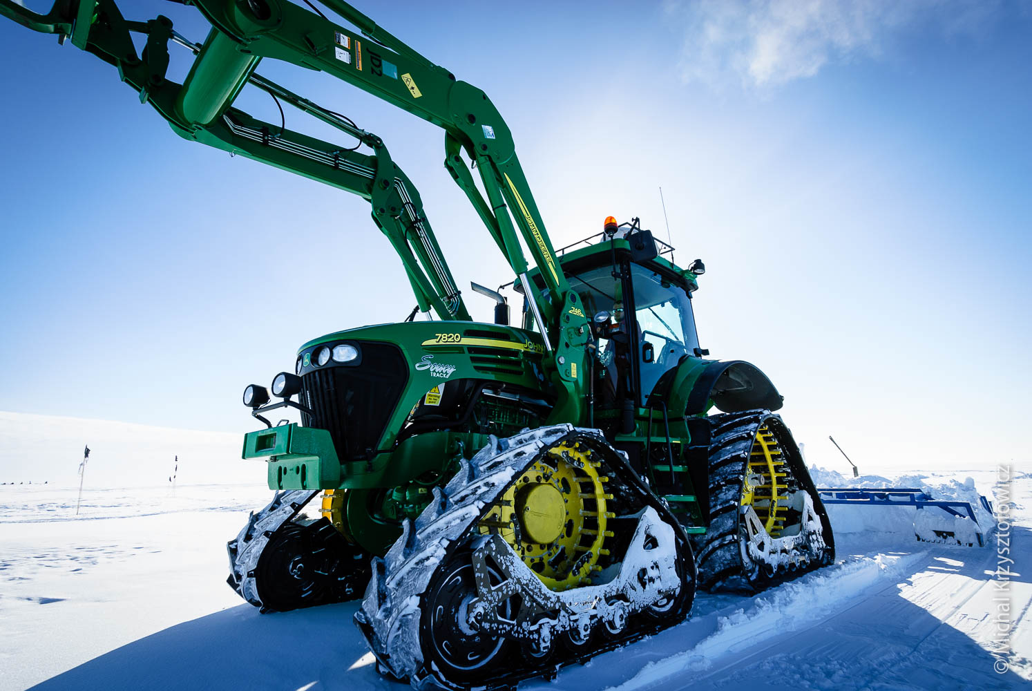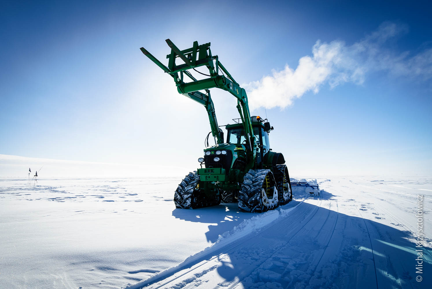 Installing the flags isn’t all we had to do to make the Skiway ready. We also had to go out with a tractor and a groomer to groom it, which means we had to even out the surface of the Skiway itself, as well as the Apron, to make it hard and smooth.